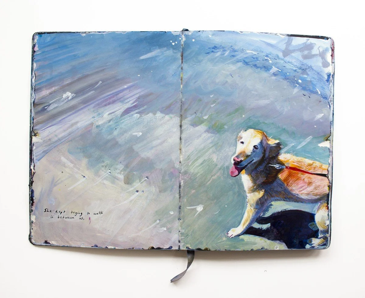 MD: Yes, these paintings are larger versions of favourite pages from my visual diary, a book of paintings. A diary does have a storytelling element in a way, but it’s less about recording a sequence of events than it is about reflecting on those events. I paint the scene usually after some time has passed – sometimes when I am in a completely different location. I want to capture how each moment made me feel; how I understand it through the lens of time.